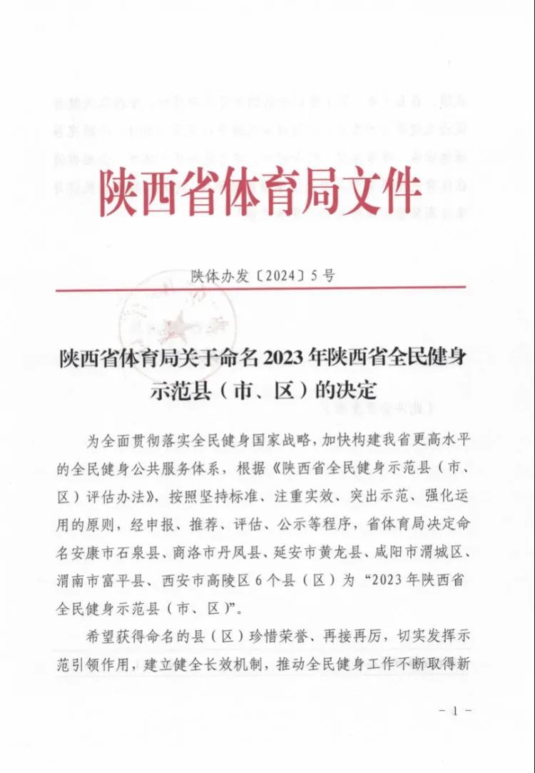 高陵區(qū)榮獲陜西省全民健身示范縣(區(qū))