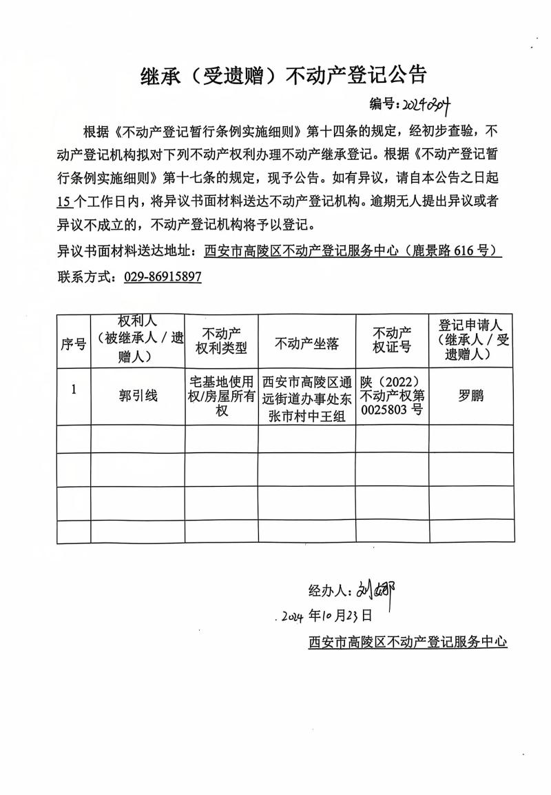 羅鵬繼承(受遺贈)不動產登記公告 編號:20240304