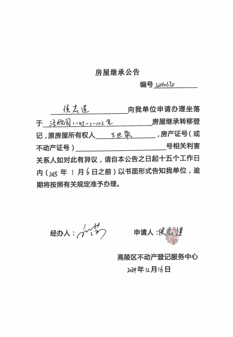 候志蓮房屋繼承公告,編號:20240370