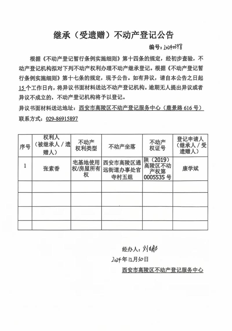 康學斌繼承(受遺贈)不動產登記公告,編號:20240398