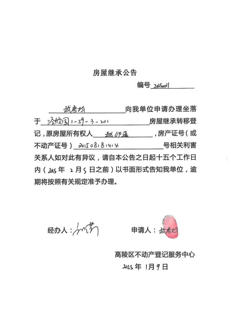 武彥均房屋繼承公告,編號:20250011