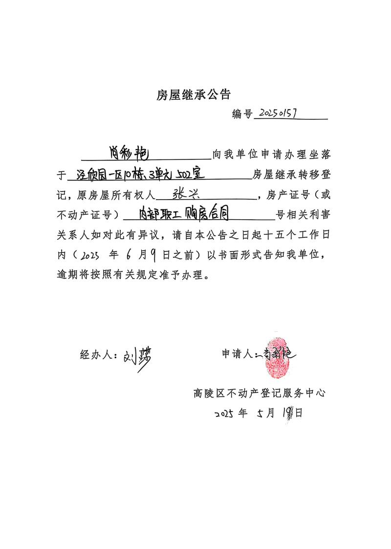 尚彩艷房屋繼承公告,編號:20250157