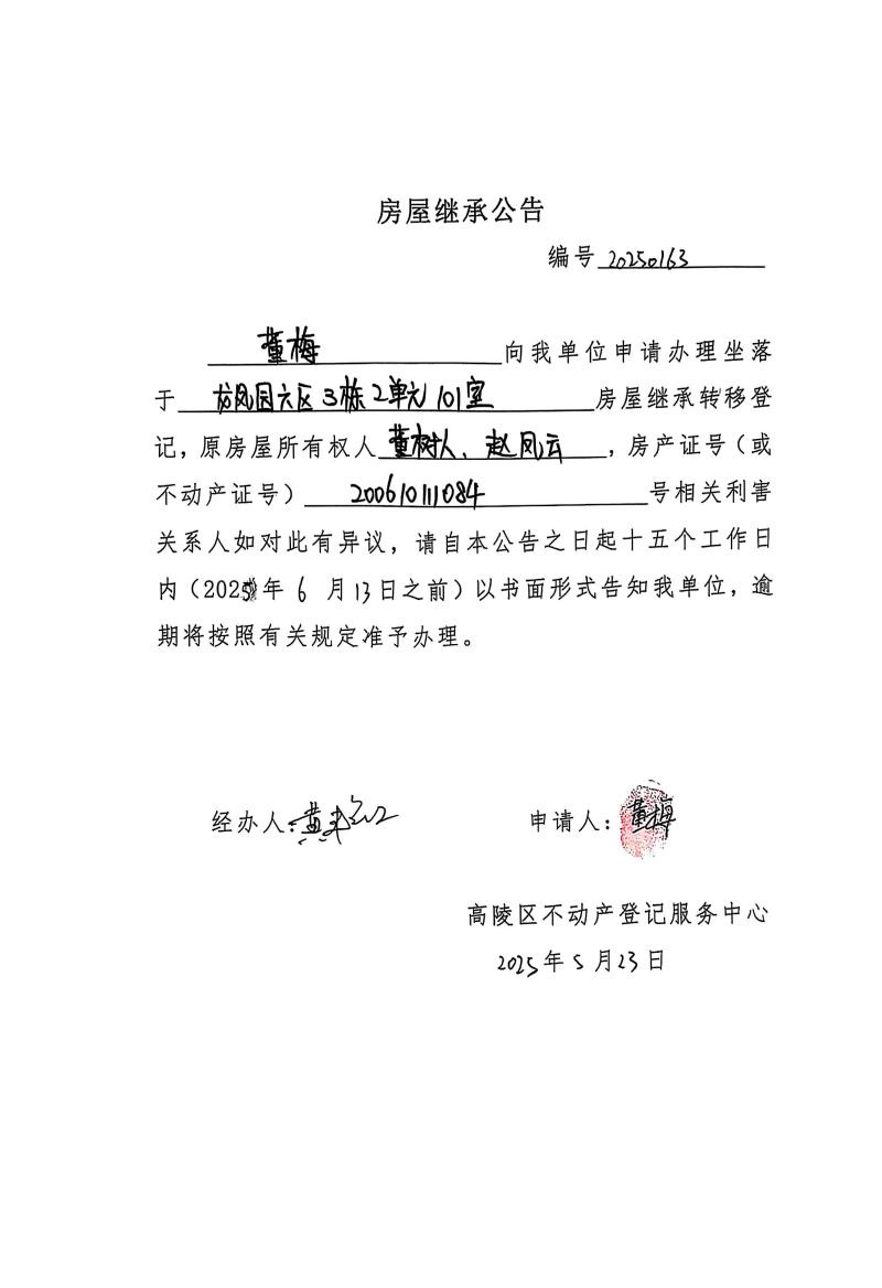 董梅房屋繼承公告,編號:20250163