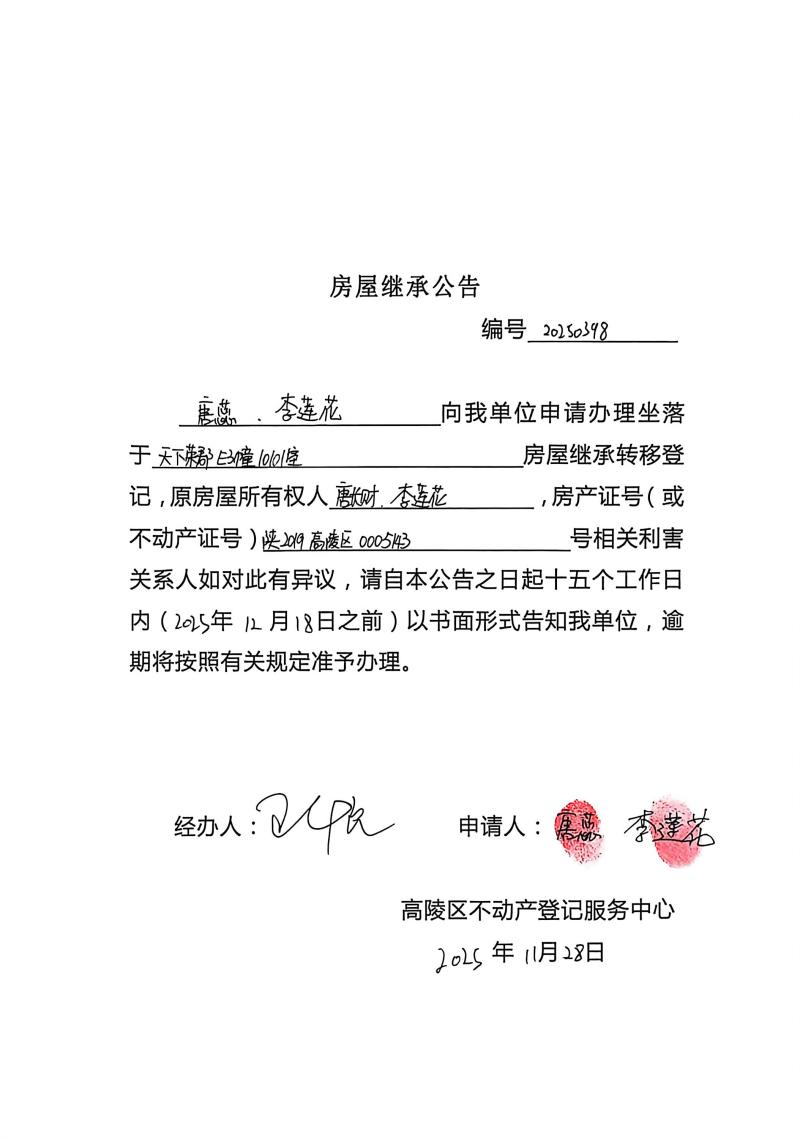 唐蕊、李蓮花房屋繼承公告,編號:20250398