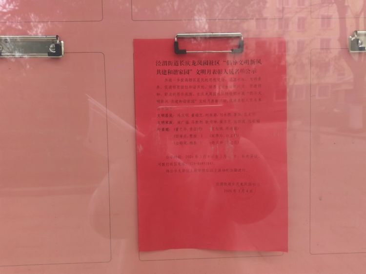 長慶龍鳳園社區黨委副書記劉香宣讀《涇渭街道長慶龍鳳園社區關于文明月表彰活動的決定》