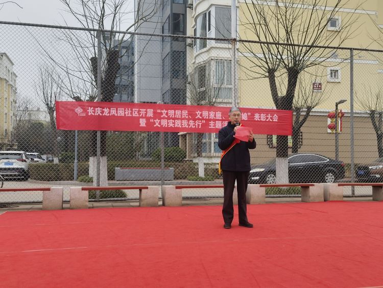 活動伊始,長慶龍鳳園社區黨委書記、居委會主任楊曉東發表了講話。楊書記表示,國風之本在民風,民風之本在新風。作為走在奔康大道上的文明楷模,大家的一言一行都詮釋了中華民族的傳統美德,彰顯了時代文明新風。社區文明評選,事關弘揚社會正風正氣和精神文明建設。希望通過這一系列評選活動,推選出一批文明典范,大力宣傳鄉風文明,弘揚正能量,也借此機會,倡導長慶龍鳳園社區廣大居民朋友們都以他們為榜樣,紛紛爭當文明人,爭建文明家庭,為龍鳳園早日建成美麗和諧社區作出每個家庭乃至每個人的貢獻。