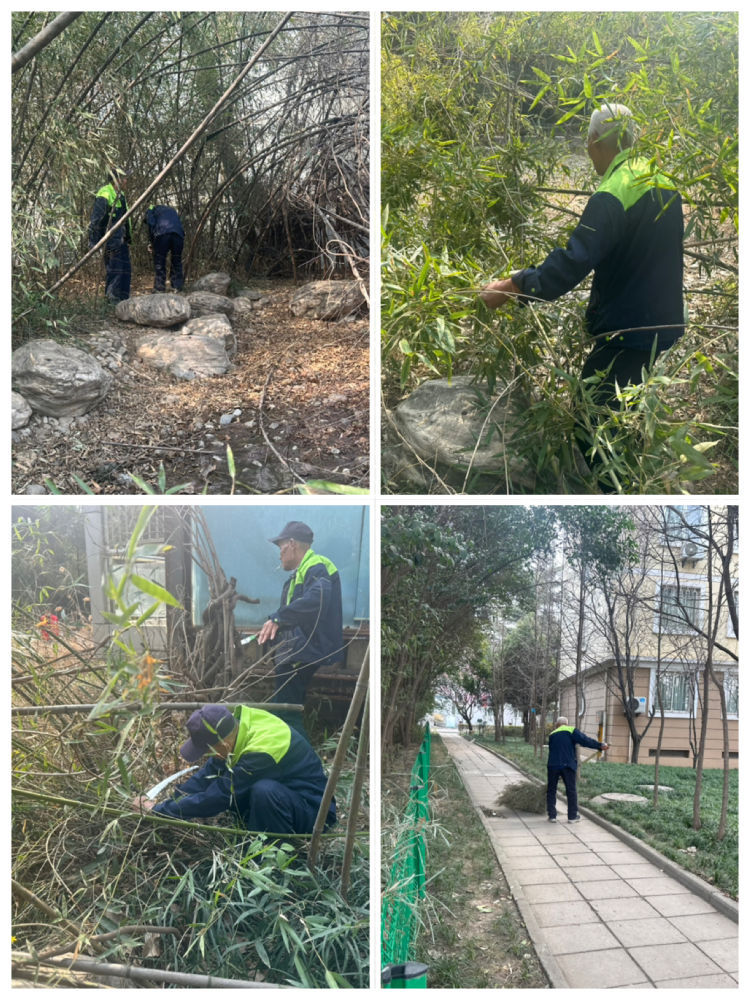 重點(diǎn)對(duì)九區(qū)老年大學(xué)南側(cè)綠地,廢棄景觀水池邊溝和兩側(cè)綠化帶以及雜草、枯枝、房前屋后障礙物進(jìn)行全覆蓋、拉網(wǎng)式清理整理,進(jìn)一步凈化環(huán)境,確保主要干線和邊邊角角干凈整潔。
