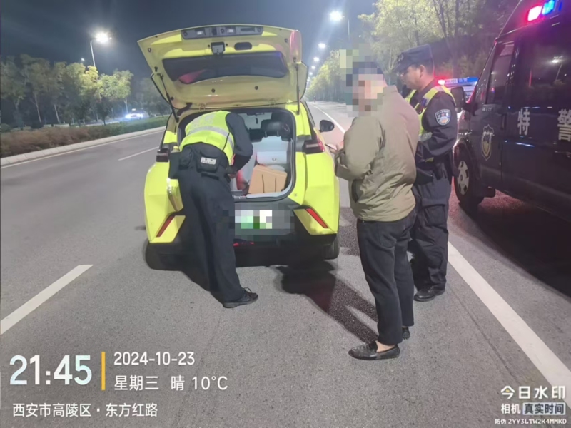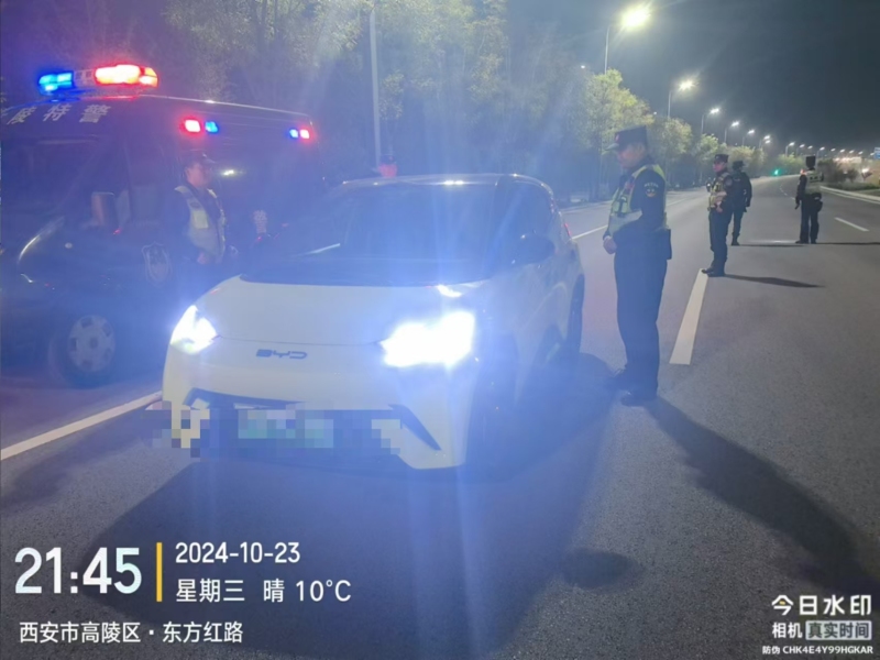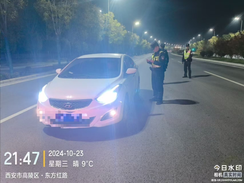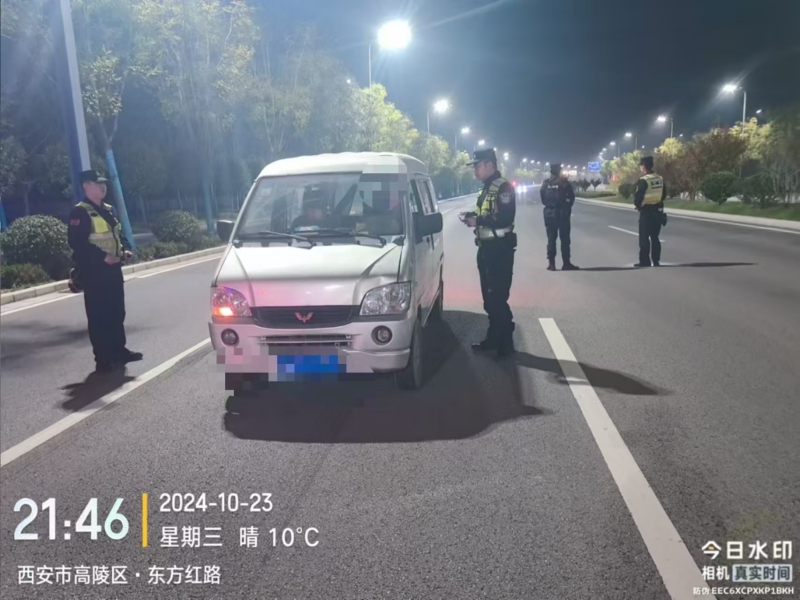 10月23日晚,西安市公安局高陵分局巡特警大隊出動警力 8人,警車1輛,在高陵轄區東方紅路西路組織開展武裝設卡盤查工作。