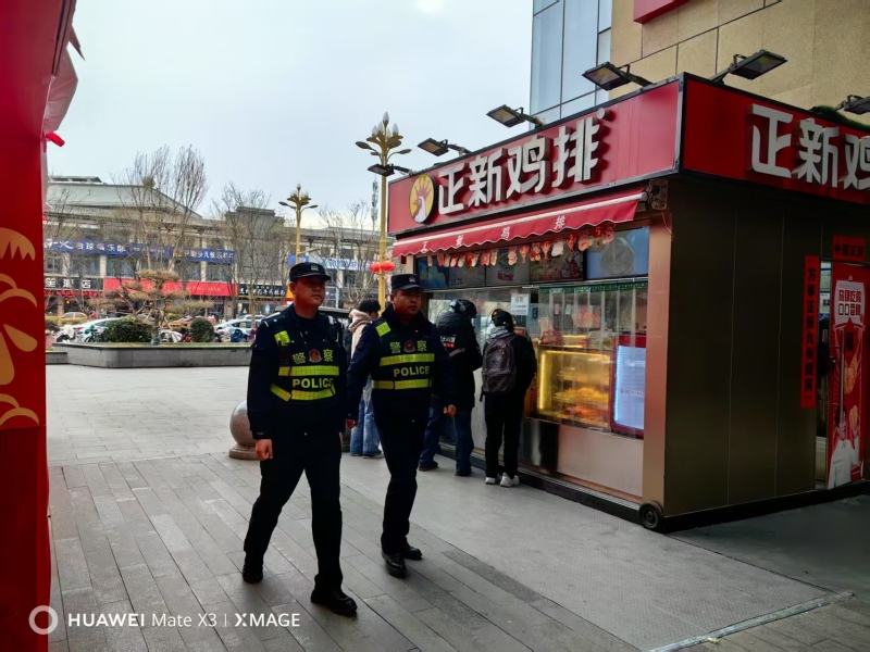 2025年2月6日上午,公安高陵分局渭橋派出所出動警力3人,警車一輛,對轄區內龍發廣場、區醫院、中醫院等重點區域和人員密集場所,采取步巡與車巡相結合的方式開展巡邏工作,對路人、小攤販發放禁燃禁放宣傳資料并加強重點區域巡邏。