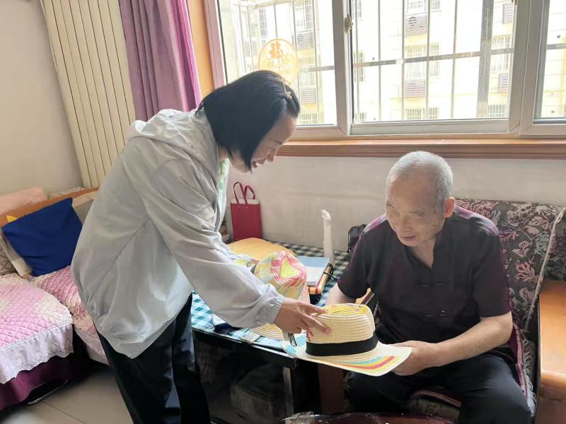 活動結束后,社區工作人員并未停下腳步,他們帶著滿滿的愛意,專門為轄區行動不便的老黨員上門送去禮帽。每到一戶,工作人員都與老黨員親切交談,詢問他們的生活狀況和身體情況,讓老黨員們感受到社區的關懷與溫暖。