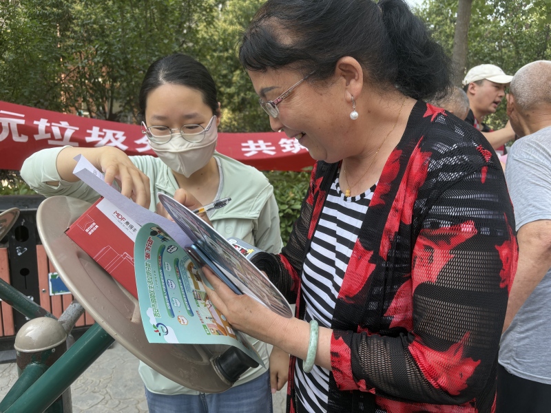 “分類知識問答競賽” 前,居民們駐足觀看,從一道道趣味問題中學(xué)習(xí)垃圾分類知識;有的居民拿著手機(jī)拍照記錄,打算回家和家人一起學(xué)習(xí);有的爺爺奶奶拉著工作人員,仔細(xì)詢問不熟悉的分類知識,學(xué)習(xí)熱情絲毫不輸年輕人!