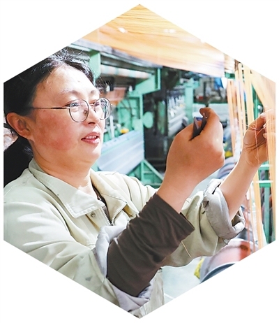 山東青島市即墨區龍山街道一家紡織企業內,工人在生產出口服裝面料。