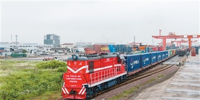 一列滿載貨物的海鐵聯運班列從鐵路浙江義烏西站開出,駛向寧波舟山港。