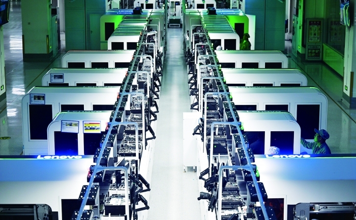 這是7月4日拍攝的聯想天津零碳智造工廠筆記本生產線。 新華社圖