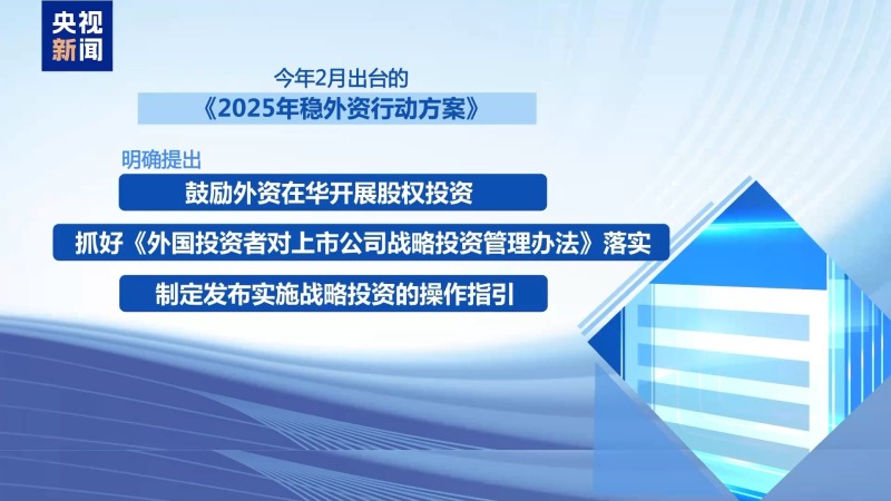 今年2月出臺的《2025年穩(wěn)外資行動方案》明確提出:鼓勵外資在華開展股權(quán)投資,抓好《外國投資者對上市公司戰(zhàn)略投資管理辦法落實》,制定發(fā)布實施戰(zhàn)略投資的操作指引,還提出取消外商投資公司使用境內(nèi)貸款限制、鼓勵外國投資者投資設(shè)立投資性公司、便利外國投資者在華實施并購投資等。