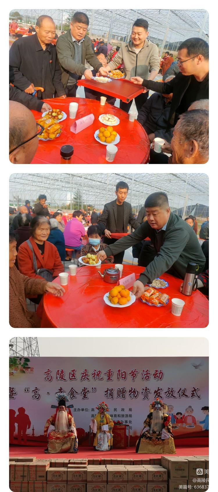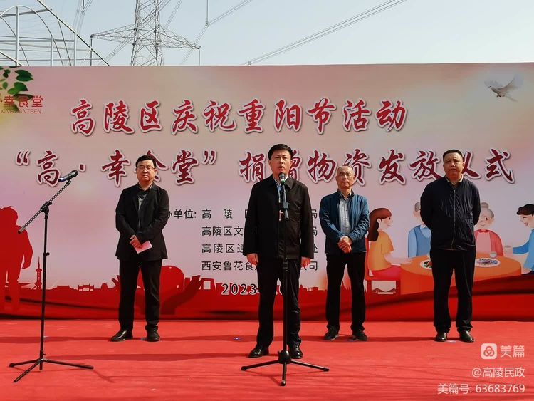 金秋結碩果,人壽添花香。10月23日是中華民族的傳統節日——九九重陽節,高陵區在灰堆村“高·幸食堂”舉行慶祝重陽節活動暨“高 · 幸食堂”捐贈物資發放儀式。西安魯花食用油有限公司向全區40家“高·幸食堂”捐贈米、面、油、調味品等共計10萬元物資。區政府副區長張敏濤出席活動。區民政局局長劉林、區民政局分管負責同志,各街辦分管負責同志及民政辦主任,西安魯花食用油有限公司代表、40家“高 · 幸食堂”代表,500名老年人參加活動。