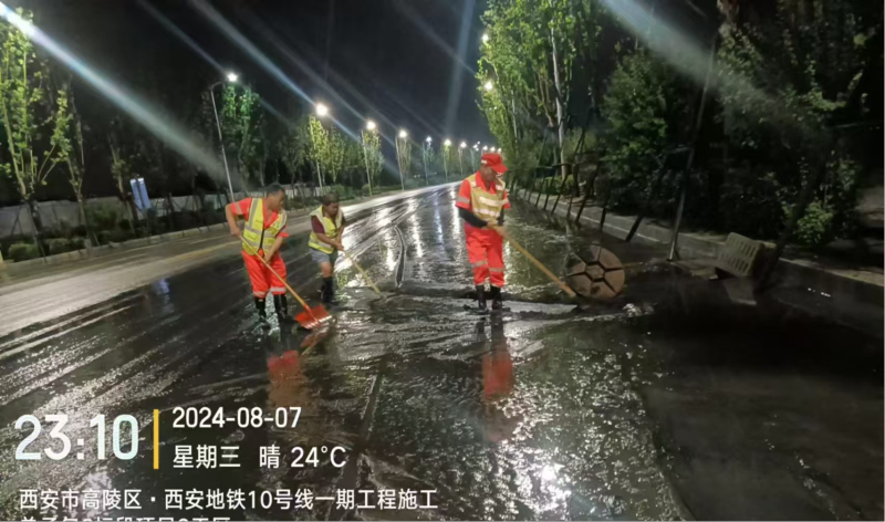 雨停積水退去后,8月8日凌晨起,城管市容環(huán)衛(wèi)工作者又投入到了緊張的道路沖洗工作中…
