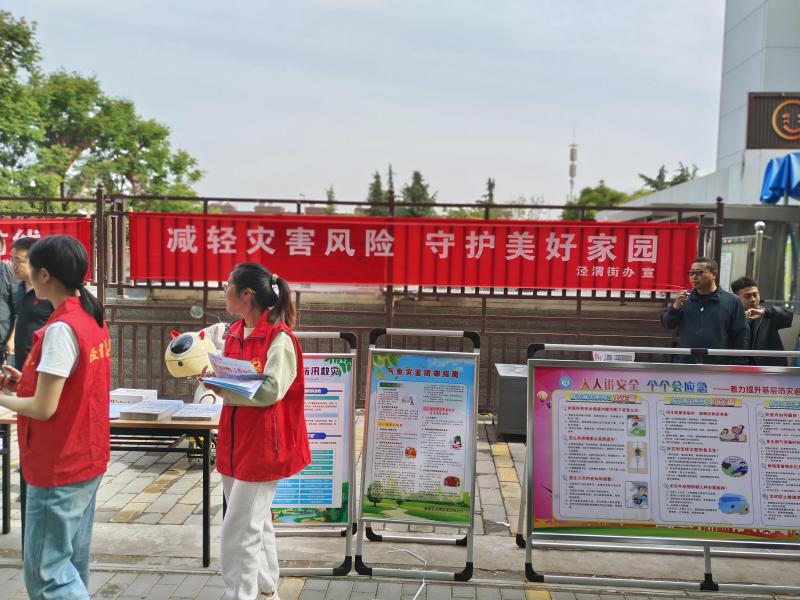 活動現場,涇渭街道辦事處黨工委副書記朱哲帶隊,通過懸掛橫幅、張貼海報、發放資料、現場咨詢等方式,宣傳了防地震、防雷擊、防自然災害、安全用火、安全用電、安全用氣等防災減災知識和應急避險常識。