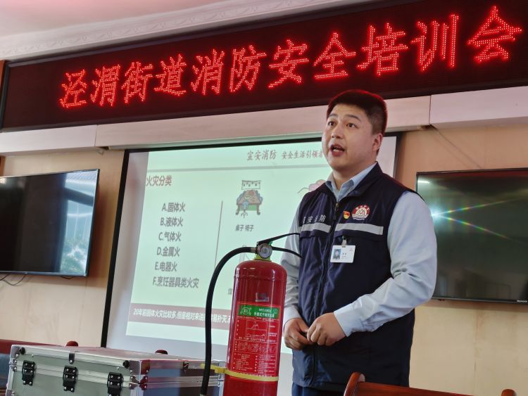 培訓會上,涇渭街道辦事處黨工委副書記朱哲就消防安全工作提出要以“以防為主,防預結合,生命至上”的責任感與緊迫感,強調了此次消防安全知識專題培訓的重要性和必要性。
