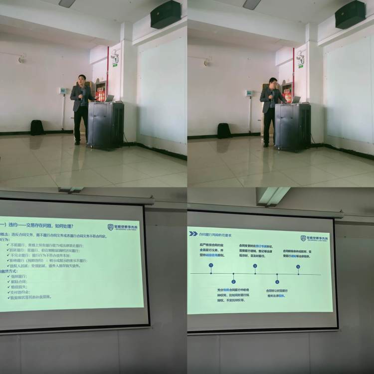 活動(dòng)中,寬明律所的王鑫律師結(jié)合企業(yè)生產(chǎn)經(jīng)營實(shí)際,圍繞合同概述,合同主體合同標(biāo)的,合同權(quán)利和義務(wù),合同履行,合同違約等方面進(jìn)行了講解,對(duì)企業(yè)在經(jīng)營管理中涉及勞動(dòng)合同,網(wǎng)絡(luò)輿情等方面的法律困惑進(jìn)行了現(xiàn)場(chǎng)解答,幫助企業(yè)分析潛在的法律風(fēng)險(xiǎn),并提出針對(duì)性的防范措施和法律建議,增強(qiáng)了企業(yè)對(duì)法律風(fēng)險(xiǎn)的預(yù)測(cè)和預(yù)防。