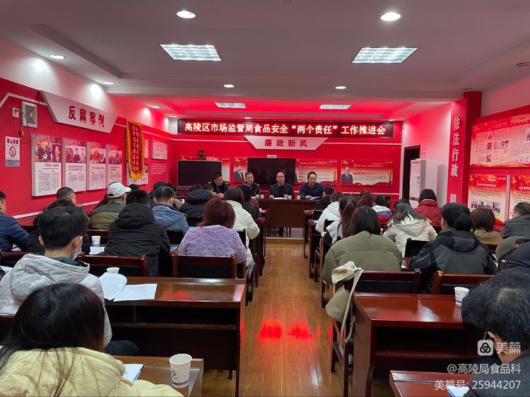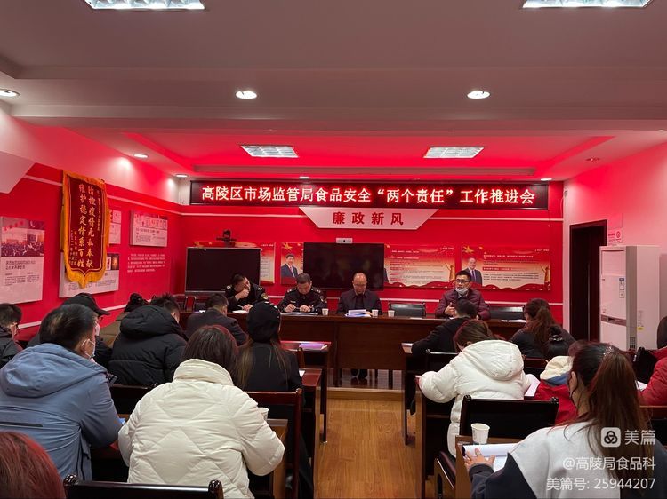 為督促企業落實食品安全主體責任,規范食品安全管理人員行為,2月23日上午,我局召開了“高陵區市場監督管理局食品安全‘兩個責任’工作推進會”,由局食品科牽頭安排,王九榮副局長、綜合科、餐飲科、各市場監管所負責人、包保B級主體25家企業食品安全總監或管理員參加了會議。