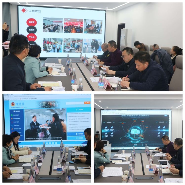 下午,沈黎萍副局長一行先來到高陵區市場監督管理局進行督導調研。在調研會期間,督導調研組先后聽取了落實主體責任平臺整體情況匯報、高陵區局工業產品“兩個責任”工作匯報、“智慧市監”和“質量基礎設施一站式服務平臺”的情況介紹。