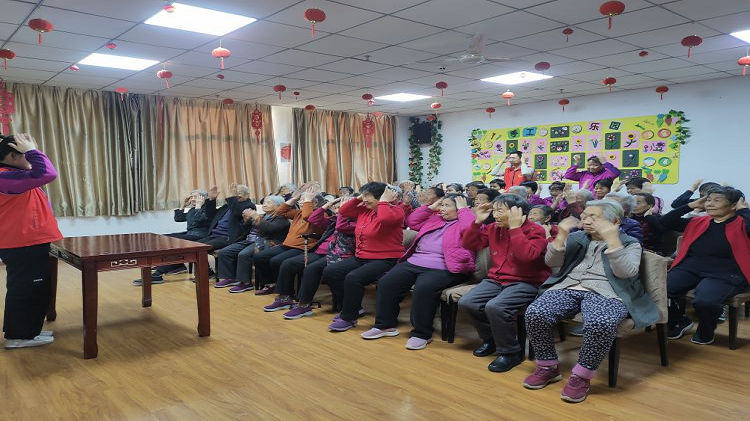 活動開始前,現場工作人員和志愿者幫助攙扶老人有序就坐,伴著輕快的音樂,大家一起做起了手指健腦操,快樂地“舞動手指”,現場每個人臉上洋溢著幸福的笑容。
