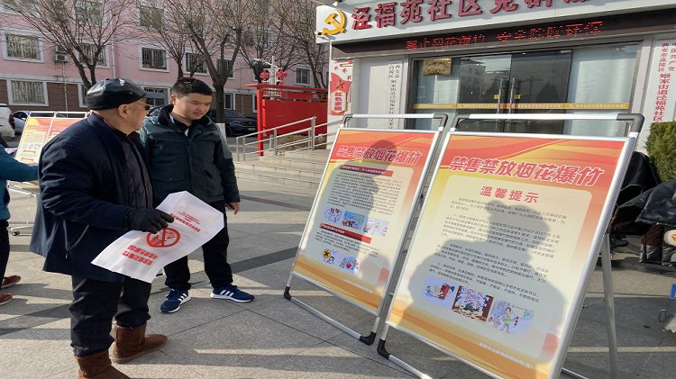 活動現(xiàn)場,工作人員向居民、商戶發(fā)放《禁燃禁售告全區(qū)人民書》、禁燃禁售宣傳冊及手提袋,積極引導商戶及居民做到不銷售、不儲存、不燃放煙花爆竹。同時,社區(qū)充分利用公告欄、展板、橫幅廣泛宣傳禁止燃售煙花爆竹的通知及相關安全知識,營造了濃厚的宣傳氛圍。