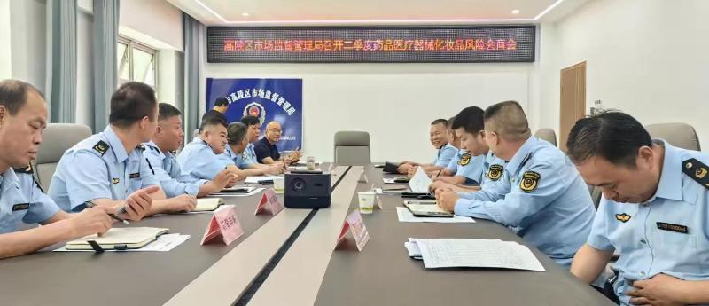 6月18日下午高陵區市場監督管理局召開第二季度藥品醫療器械化妝品風險會商會。會議由分管副局長王九榮主持,藥械化科、食藥中隊、各市場監督管理所所長參加了會議。