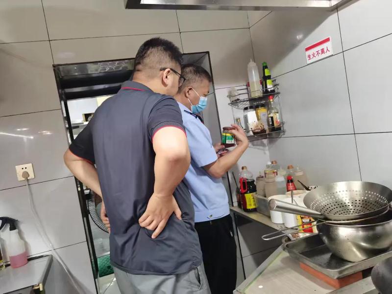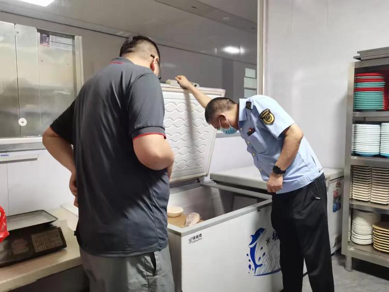此次重點檢查了食品安全管理、從業人員健康證、食品留樣、進貨查驗登記臺賬、食品庫房管理、餐飲具清洗消毒和環境衛生、廚余垃圾管理、反食品浪費等情況。檢查中發現食品未留樣、操作人員未佩戴口罩及操作帽、冰柜食材未實行生熟分開放置、冰柜食材未按要求覆膜存放、案板發霉、垃圾桶未加蓋等問題。針對以上問題提出了具體的整改措施,并現場指導工作人員按要求立即整改,督促其嚴格落實食品安全制度,及時消除食品安全隱患。
