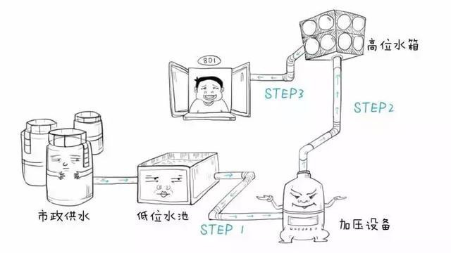 二次供水:當住宅生活飲用水對水壓、水量的要求超過城鎮公共供水或自建設施供水管網能力時,通過儲存、加壓和消毒等設施,經管道或容器供給用戶或自用的供水方式。
