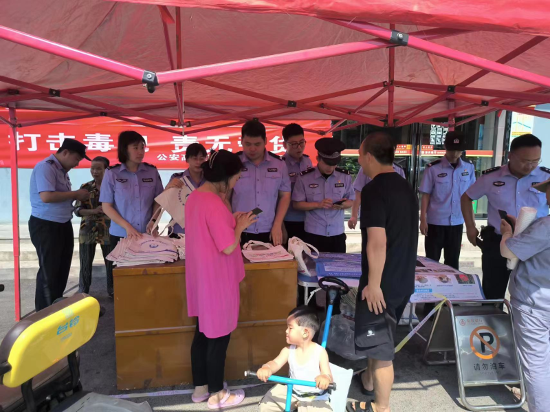 為進一步加強群眾禁毒、防毒意識,深化禁毒宣傳教育工作,為群眾打好“預防針”,在蘇家集市上布置了活動現場,我們與普法志愿者通過現場講解、發放禁毒宣傳資料、設置宣傳展架等形式,向過往群眾講解毒品的種類及危害,普及識毒技巧和防毒手段,鼓勵大家學習禁毒相關知識,認清毒品對個人、對家庭、對社區的危害,并提醒群眾如有發現吸毒行為要自覺抵制并及時向派出所反映。