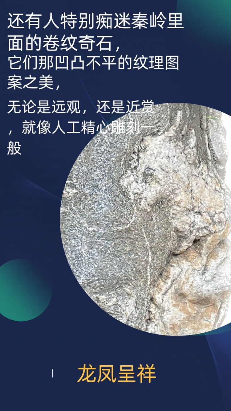 秦嶺山系受地質變動及外力的長期作用,巖石裸露,經雨雪流水侵蝕,切割和分化形成了豐富的觀賞石資源,山巒溝壑,大河小溪遍布奇石,大者如樓,小者手可把玩。