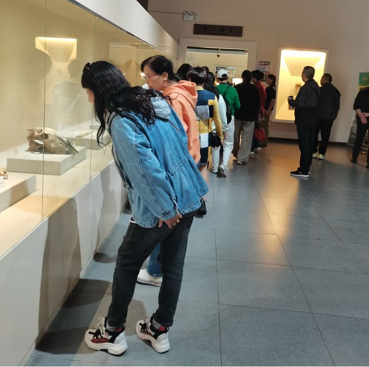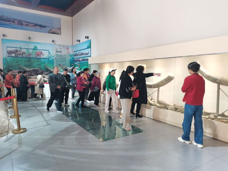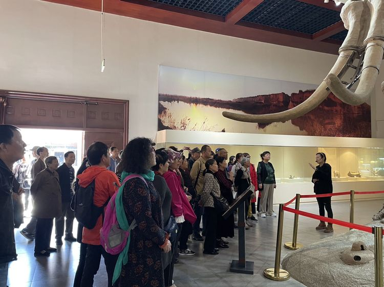 跟隨講解員的腳步,老人們一進入化石館便紛紛聚集在古象的周圍,贊嘆著高大,威猛的劍齒象。