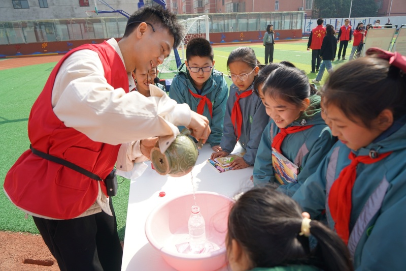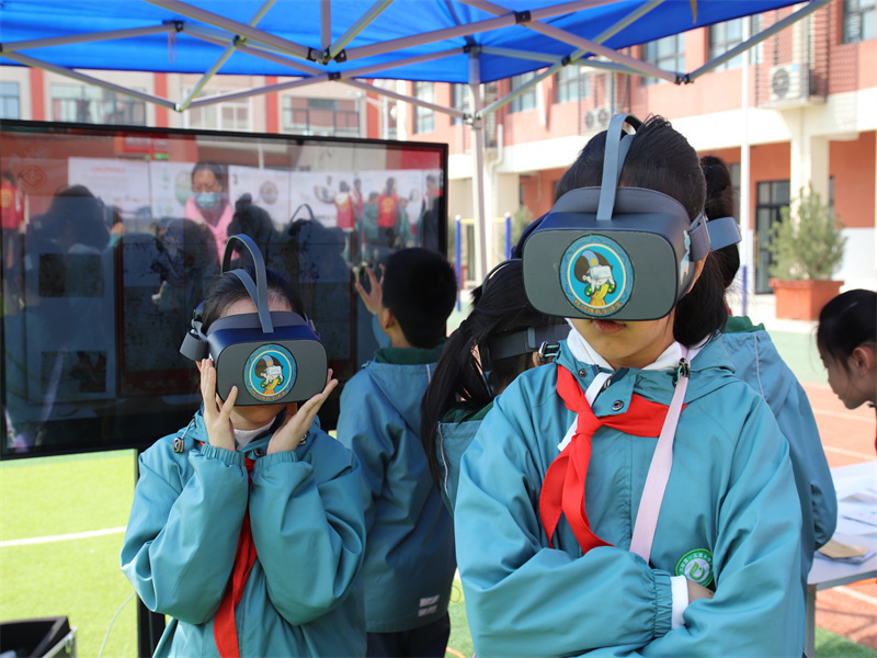 室外展區(qū),志愿者通過倒流壺向?qū)W生演示了文物內(nèi)藏的科技原理;文物知識(shí)展板前,孩子們?cè)谥驹刚叩木手v解下“云游”博物館。孩子們?cè)跉g聲笑語(yǔ)中參與文博科普知識(shí)互動(dòng)、體驗(yàn)VR實(shí)景博物館等項(xiàng)目。“我今天學(xué)到了很多歷史知識(shí),戴上VR眼鏡仿佛進(jìn)入了博物館,今后我要好好學(xué)習(xí),長(zhǎng)大為祖國(guó)作貢獻(xiàn)!”四年級(jí)(4)班學(xué)生胡欣彤說(shuō)