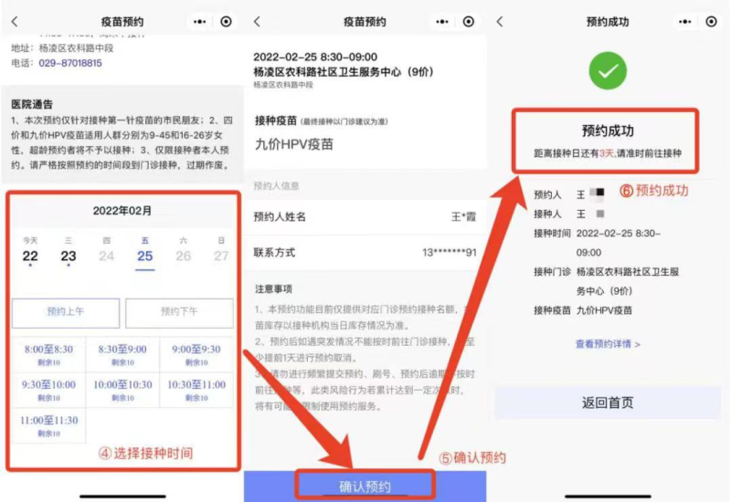 2023年2月23日上午10時整開始預(yù)約。本次開放四個接種門診號源。鹿苑衛(wèi)生院、崇皇衛(wèi)生院、高陵區(qū)醫(yī)院、涇渭衛(wèi)生院四個接種門診支持預(yù)約,數(shù)量有限,約完為止。預(yù)約成功,系統(tǒng)提示的同時,名單將于接種日在接種單位進(jìn)行公示。