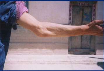 氟骨癥:當氟攝入大量時,會出現全身關節疼痛,四肢或軀干麻木,手足抽搐、僵硬,嚴重時還有關節活動困難,彎腰駝背可達到90度彎曲,胸廓變形,不能直立行走,喪失勞動力,生活不能自理甚至癱瘓。