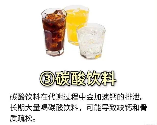 碳酸飲料中的碳酸會影響鈣的吸收,咖啡中的咖啡因會造成鈣的流失,使骨質(zhì)脆弱,就很容易發(fā)生骨質(zhì)疏松。