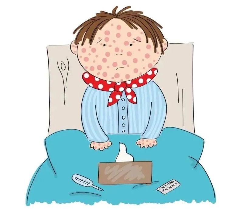 水痘患者全身癥狀輕微,皮膚粘膜分批出現(xiàn)迅速發(fā)展的斑疹、丘疹、泡疹與痂皮。