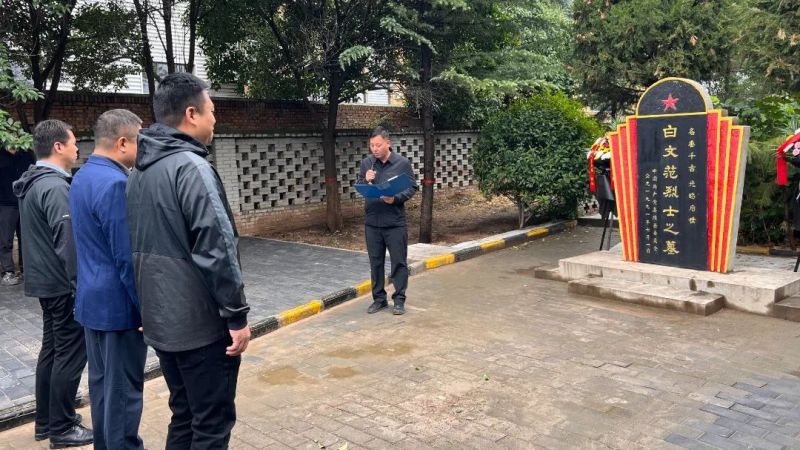 街道黨工委副書記張慶宣讀祭文,回顧了白文范烈士的英勇事跡,頌揚其不朽功勛,并號召全體黨員干部群眾銘記歷史,不忘初心,繼續(xù)前進。