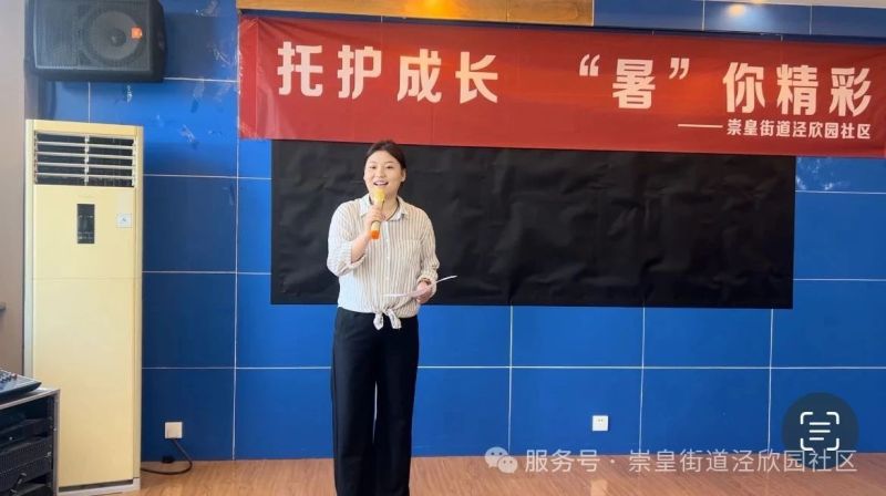隨后,志愿者們依次上臺做自我介紹:“大家好呀!我是李素琴,你們可以叫我李奶奶~ 我跳了10年舞蹈啦,希望咱們一起在舞蹈里變開心、變挺拔!”57歲的李素琴老師笑著做自我介紹。大家好,我是小劉老師,暑假里我會在作業(yè)輔導(dǎo)角幫大家解答難題,咱們一起把暑假作業(yè)‘消滅’掉,有不會的題隨時找我!”大學(xué)生志愿者小劉姐姐的話讓孩子們頻頻點頭。