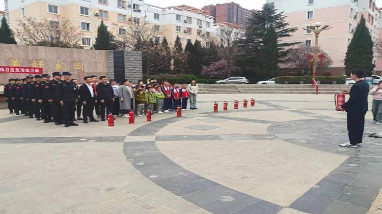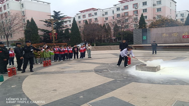安保人員為全體師生講解并現場演示滅火器的使用方法,進一步提高全體師生安全意識和自救本領。