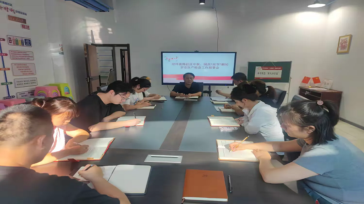 “中秋”、“國(guó)慶”雙節(jié)將至,為嚴(yán)防各類事故發(fā)生,扎實(shí)抓好雙節(jié)期間的安全生產(chǎn)工作,9月11日,涇環(huán)南路社區(qū)召開中秋、國(guó)慶節(jié)前安全生產(chǎn)工作部署會(huì)。關(guān)書記強(qiáng)調(diào):要深入小區(qū),全力摸排用電用火用氣等方面的安全隱患,認(rèn)真細(xì)致開展地毯式排查工作,做到不漏掉一個(gè)環(huán)節(jié)、不放過(guò)一個(gè)細(xì)節(jié),確保居民度過(guò)一個(gè)平安、祥和的假期。