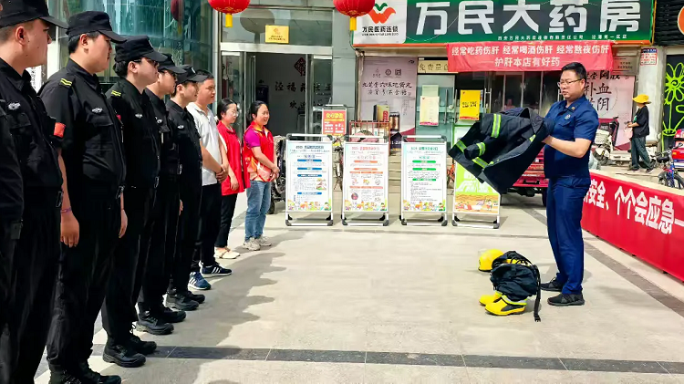 除現(xiàn)場(chǎng)宣傳外,活動(dòng)設(shè)置消防培訓(xùn)演練環(huán)節(jié),消防救援人員向安保人員和社區(qū)網(wǎng)格員、志愿者展示消防裝備,講解“消防服穿戴方法及火災(zāi)應(yīng)急流程”“消除火災(zāi)隱患”“排查身邊災(zāi)害隱患”等內(nèi)容,為后續(xù)社區(qū)安全巡查、隱患上報(bào)工作奠定基礎(chǔ),提升基層安保力量應(yīng)急處置能力。