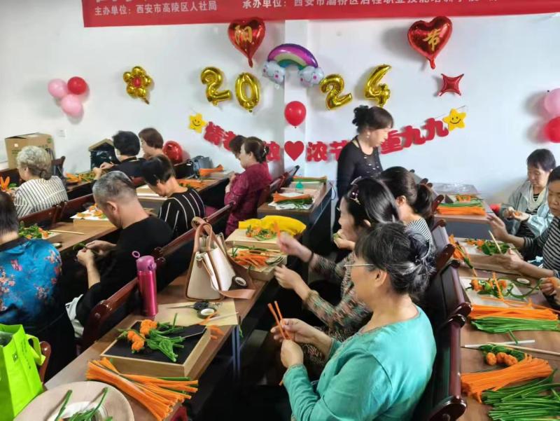 尊老不僅是中華民族的傳統(tǒng)美德,也是社區(qū)工作實踐長久以來的價值導向。值此重陽佳節(jié)之際,紅崖頭社區(qū)聯(lián)合樂潤口腔對轄區(qū)老年人進行義診,并且免費為80歲以上老年人鑲活動牙;赧王寨社區(qū)邀請皇金管家技能培訓學校專業(yè)手工藝老師為30余名退休老人講解非遺文化并帶領大家制作“柿柿如意”扭扭棒,感受非遺文化的獨特魅力。