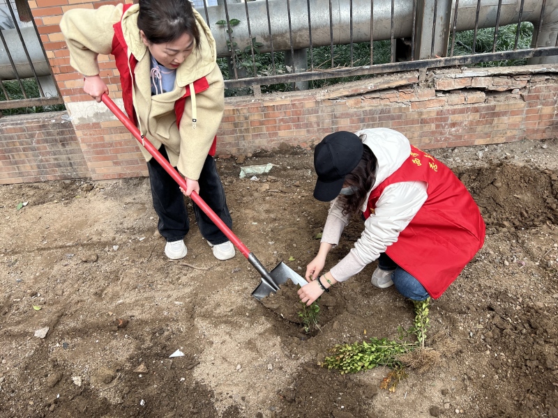植樹現場,大家熱情高漲,植樹工作有序開展。孩子們手持鐵鍬,在老師的帶領下認真挖坑,盡管動作稍顯笨拙,卻充滿干勁。黨員及社區志愿者們分工明確,搬運樹苗、扶正培土,各環節配合默契,紅色馬甲在綠樹間形成一道亮麗風景線。大家三五人一組,挖坑、植苗、培土、踩實,互相配合,認真栽下每一棵苗木。一番熱火朝天的勞動后,一棵棵新栽種的樹苗亭亭玉立,展現出勃勃生機,為初春的大地平添絲絲活力。在近1個小時的時間里,100余株“黃楊苗”在此“安家落戶”。