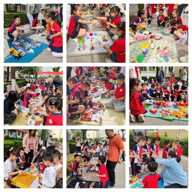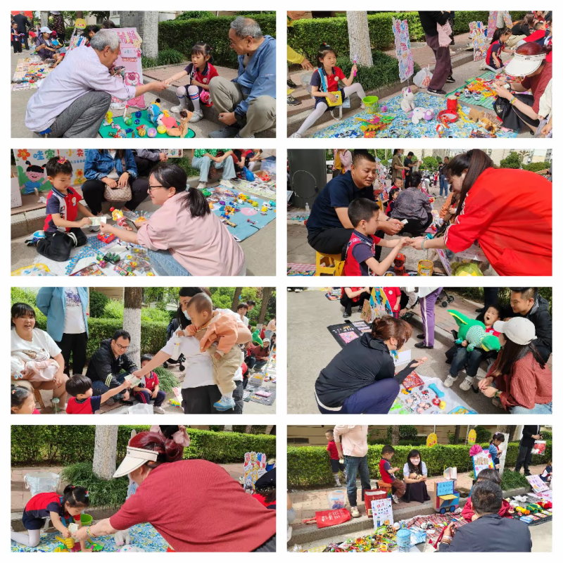 活動現場,小攤主們把家中閑置的玩具、書籍挑選好,打包整理搬運到現場,認真布置自己的攤位。孩子們在家長的陪同下,熱情地向過往的顧客介紹和推銷自己的商品。家長們也化身“智囊團”,與孩子共同打造特色攤位。通過自主定價、交換閑置物品以及處理交易中發生的各種問題,鼓勵小朋友們大膽嘗試,勇敢表達。