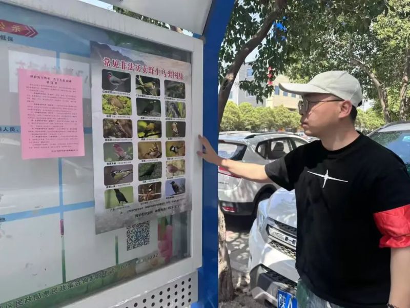 開展“護(hù)鳥知識進(jìn)萬家”行動,網(wǎng)格員、志愿者組成宣傳小隊(duì),逐戶上門發(fā)放宣傳彩頁。工作人員向居民通過彩頁耐心地講解“不投喂人類食物”“不隨意驅(qū)趕鳥類”“發(fā)現(xiàn)受傷鳥類如何救助”等知識,并附上護(hù)鳥熱線與舉報(bào)電話,呼吁居民一起做野生鳥類的守護(hù)者。同時(shí),利用公告欄、微信群、轄區(qū)LED屏等推送野生鳥類保護(hù)宣傳內(nèi)容,確保愛鳥護(hù)鳥入腦入心。