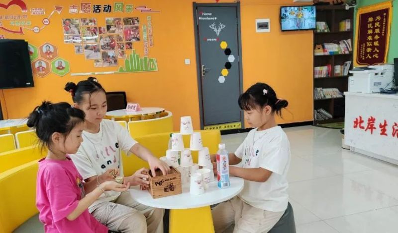 社區堅持“公益為主、低償為輔”,通過“政府補一點、社會捐一點、志愿獻一點”的方式,每月開展“公益服務日”,提供免費理發、義診、幫辦代辦等服務,尤其照顧老年人和特殊群體。一位獨居老人感動地說:“孩子不在身邊,但服務站的孩子們常來看我,幫我辦事,就跟自己家人一樣。”帶孫子的李大爺也愛來服務站,小孫子在繪本角讀得入神,他則坐在旁邊休息聊天。這一方小天地,既讓孩子有了安全好玩的去處,也讓老人有了歇腳交流的空間,真切體現了社區對“一老一小”的關懷。