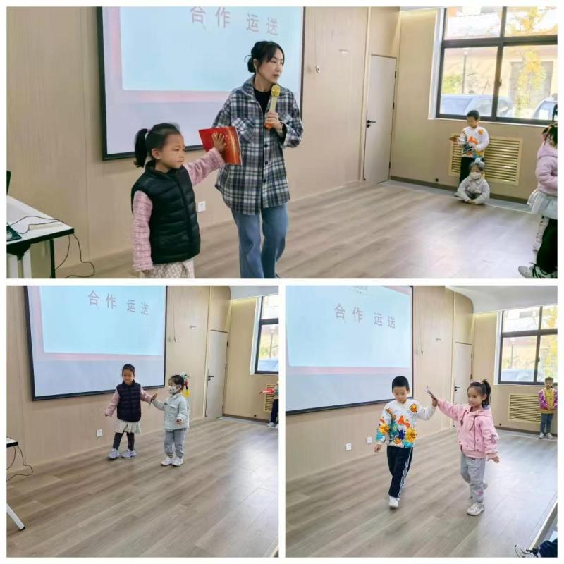 之后,老師們帶領大家開展了拓展游戲—合作運送。沒有工具輔助,全憑同伴眼神交流與步伐協調,每一步都藏著信任,每一次成功運送都伴著歡呼。簡單的合作,成了連接友誼的紐帶,讓孩子們在歡笑中學會合作,在協作中收獲成長。